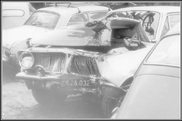 Vores anden bil - en Zephyr Six fra 1962, den fik vi d. 20.9. 1966, og den kostede 18.400. Samtidig fik vi bygget en trailer, som vi betalte 3.200 kr. for. Zephyren kørte John galt i, den blev totalskadet, John kunne heldigvis »nøjes« med et brækket et håndled |